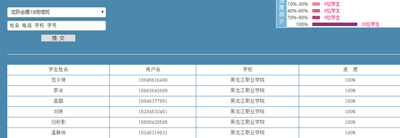 资源学习,教师发布学习任务与相应问题,学生在国家会展资源库进行微课学习,课程统计让教师能够及时了解学生学习进度。