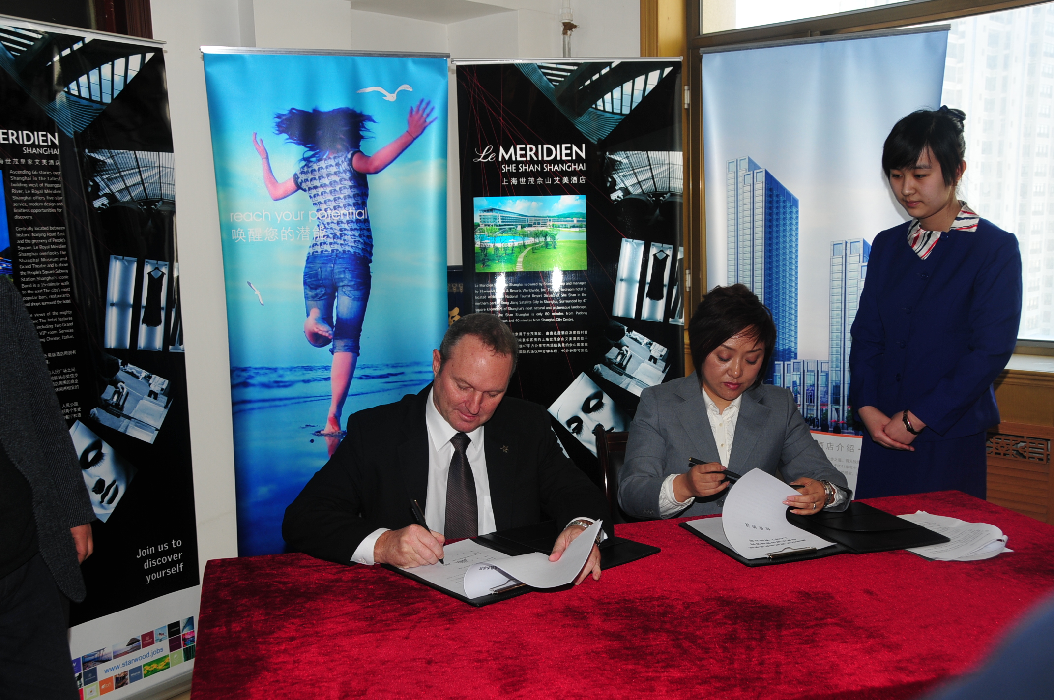 2011年4月8日上午,学院与喜达屋酒店及度假酒店集团隆重举行校企合作签约仪式。本次签约仪式由旅游与人文艺术学院邓剑平院长主持,学院赵继会院长、刘公远副院长,以及喜达屋酒店集团大中华区区域人力资源总监Micheal pross先生、喜达屋旗下上海世茂佘山艾美酒店总经理Catherine Racsko女士出席了本次签约仪式。