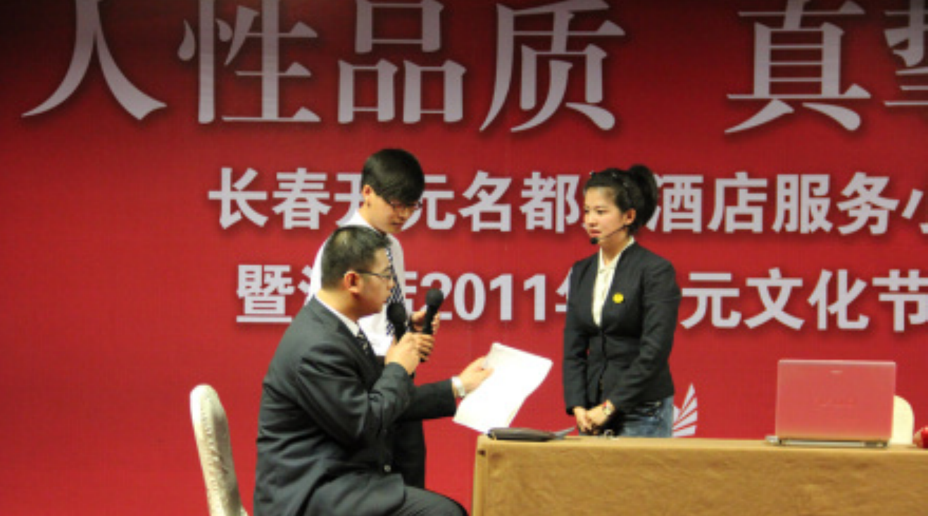 我院师生融入开元酒店集团企业文化 我院实习学生在开元文化节与开元集团领导合影 开元文化节我院学生担任英语主持人 酒店前台员工外语能力大赛我院专业英语教学团队杨威老师担任评委 我院学生牛耀凯等在开元酒店集团举办的主持人大赛中获奖