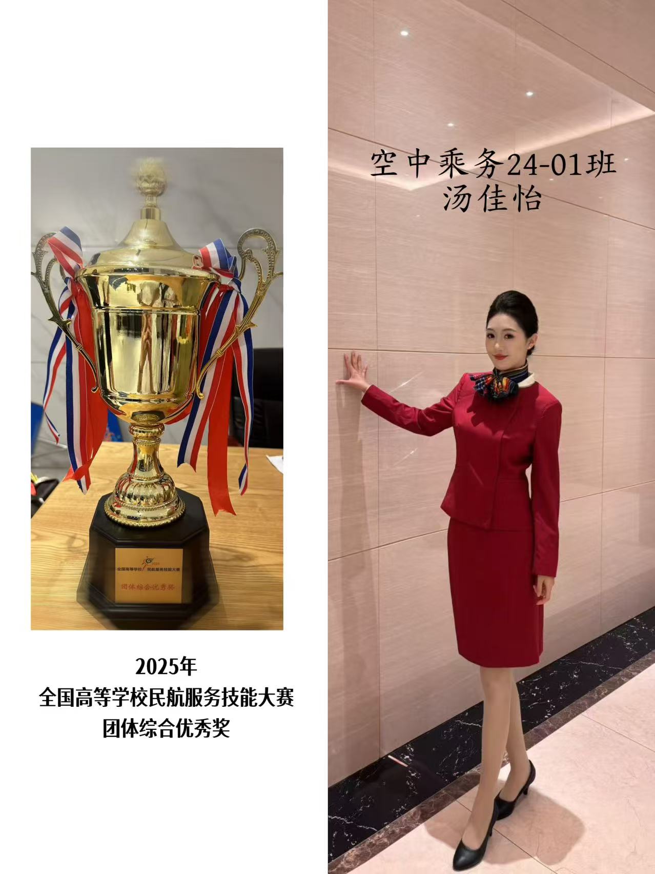 在2025年航空运输产教融合系列活动之高校大学生供需对接就业活动中,BB贝博艾弗森官方网站荣获团体综合优秀奖、汤佳怡同学荣获全国高等学校民航服务技能大赛全国总决赛形象大使称号、谭晓宇同学荣获金通杯主持人大赛40强的好成绩。