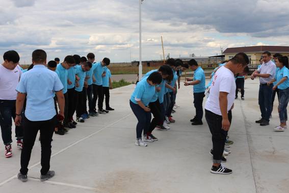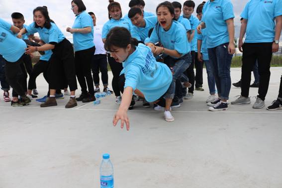 开班仪式后,在厂部篮球场安排了“十人九足”、“雷区取水”等分组户外活动,在活动中大家团队合作、积极配合老师们共同完成每一项任务,充分领略了团队合作的重要性。