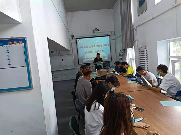 2021年7月2日,2019级城市热能应用技术专业学生顶岗实习动员大会在锅炉机组模型实训室顺利召开。