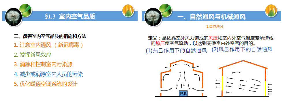 在讲授《通风工程》课程过程里的自然通风,结合当前新冠疫情的防范措施,贺老师告诉同学们在寝室和教室里要经常通风,有效降低空间内的致病因子浓度。太阳光直接照入室内,还可以利用阳光中的紫外线进行消毒、杀菌。建议每天开窗通风至少2次,是降低感染风险的有效措施。
