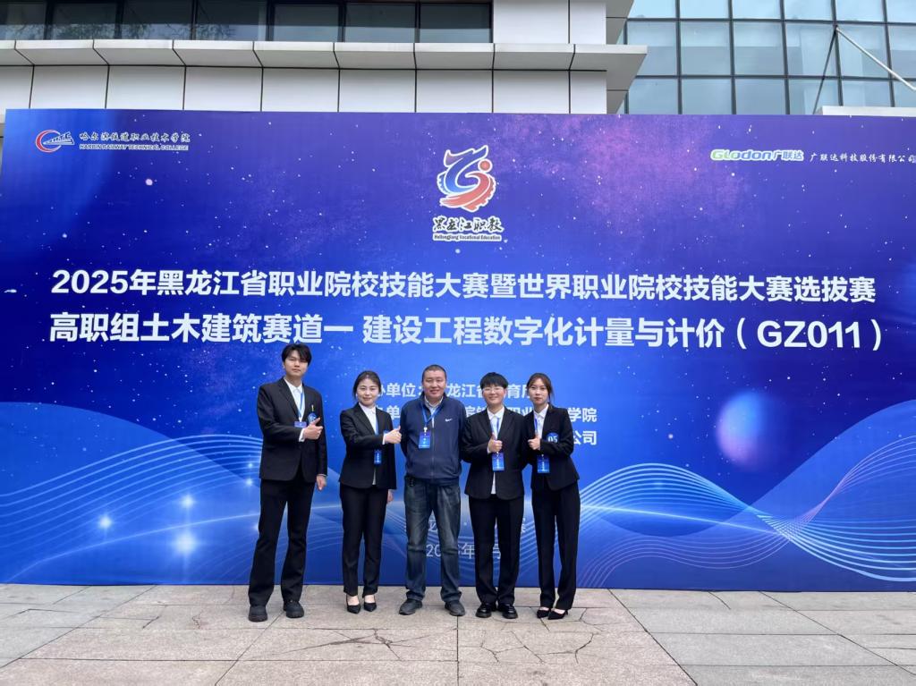 5月17日,由黑龙江省教育厅主办的2025年黑龙江省职业院校技能大赛暨世界职业院校技能大赛选拔赛在哈尔滨铁道职业技术学院举行,在“GZ011建筑工程数字化计量与计价”赛项中,贝博官网建筑工程学院教师郝建涛、鲁春辉指导的徐卓、李志鸿、韩雪、赵秦焱四名学生组成的代表队荣获二等奖。
