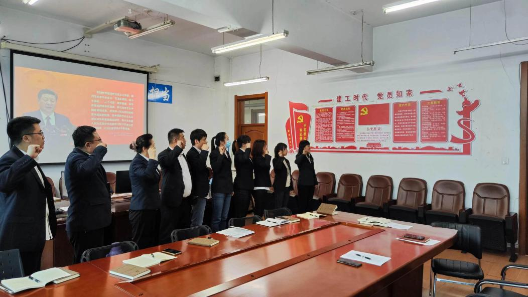 二是重温入党誓词。面对鲜红的党旗,景铎同志作为领誓人,带领支部党员一起高举右手,再次庄严宣誓。“我志愿加入中国共产党……随时准备为党和人民牺牲一切,永不叛党。”铿锵恢宏的誓词,强烈震撼着在场的每一位党员,一字一句,神圣而豪迈,体现了党员同志们对中国共产党的无限忠诚。与会党员同志纷纷表示,通过重温入党誓词,再一次体会到了作为一名共产党员的责任感和使命感,在今后的工作中一定以昂扬的士气、进取的心态和创先争优的精神践行入党誓词,以踏实的工作态度和优秀的业绩为学院的发展建设做出自己应有的贡献。