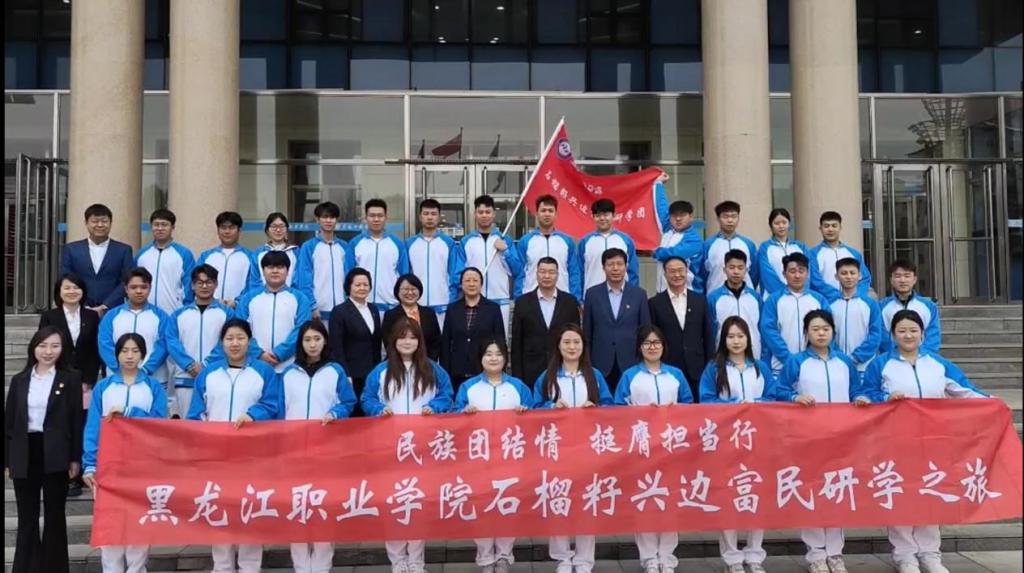 随后吴艳秋在致辞中强调,“石榴籽兴边富民研学之旅”是学校贯彻习近平总书记关于“铸牢中华民族共同体意识”重要论述的具体实践,是学校落实国家《兴边富民行动“十四五”规划》的破冰举措。学校将站在服务国家边疆治理的战略高度谋划工作,立足十八站鄂伦春民族乡的生态资源优势,将研学过程转化为国情教育的生动教材,坚持把思政小课堂同社会大课堂相统一,在社会生活中,回答好“行走的思政课”怎么讲、谁来讲、在哪讲等现实问题,切实提升实践育人的针对性和实效性。她希望全体研学成员,在驿道的马蹄印里读懂家国情怀,在鄂族长者的皱纹中感受文化根脉,在边疆振兴的实践中淬炼青春本色。期待大家带着“沾泥土”“挂露珠”“冒热气”的研学成果凯旋,为学校“双高”建设注入新的青春动能!