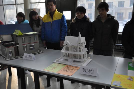 2012年12月4日下午,我院工程造价专业首届房屋模型制作大赛,在图书馆阳光大厅隆重举行。此次比赛共有20组60多名学生参加,作品20多件,经过展示和评比,共评出一等奖1组,二等奖2组,三等奖2组,优秀奖3组。