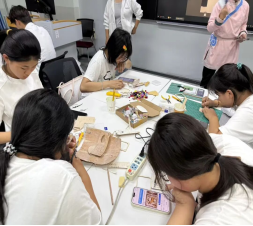 实践环节中,两位老师穿梭在学生之间,手把手现场指导大家制作桦树皮烫烙画。铅笔在桦树皮上勾勒轮廓、渐显雏形,烙铁头落下时“滋滋” 作响,金属饰品与布料的元素也被巧妙融入 —— 在师生的互动与创作中,一幅幅鲜活的桦树皮作品悄然成型,顷刻间,千年 “桦” 语跨越时光,在青春的指尖完成了生动的 “同音传译”。