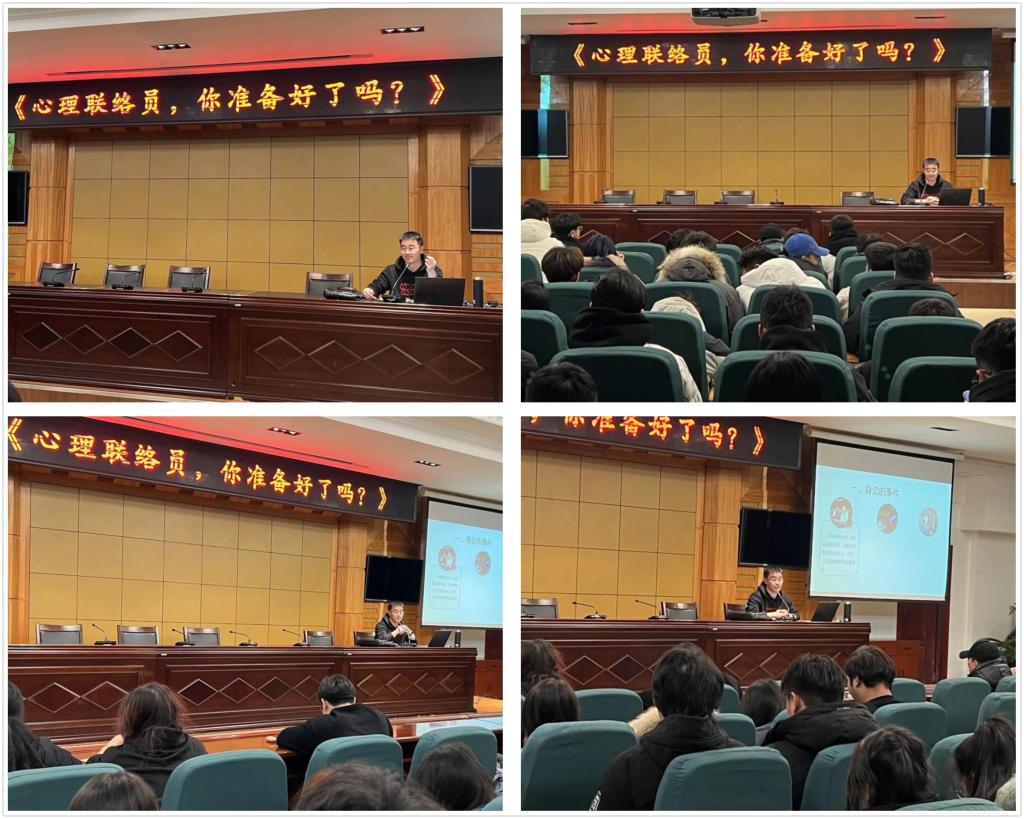 为进一步强化心理委员和心理联络员的学生干部责任,发挥好学生干部的前哨探头作用,提高学生应对心理危机的能力,筑牢我院学生心理安全护防线,打造安全稳定的校园环境,12月18日,心理中心谭志远老师为我院心理联络员开展了题为“心理委员,你准备好了吗?”的主题教育培训。