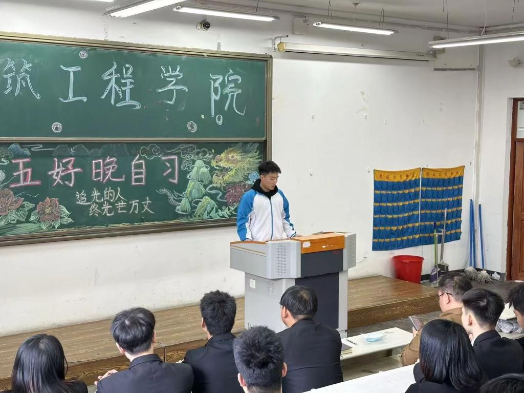 “五好晚自习”班级代表工程造价24-04班班长任相儒同学,分享了班级在晚自习管理中的经验,如调动班级同学学习积极性、合理规划学习任务、营造安静学习氛围等方面的优秀做法,与会班级干部认真聆听,纷纷表示受益匪浅,将在今后学习生活中借鉴这些成功经验,共同为班级荣誉而努力。 此次表彰活动不仅是对优秀班级和晚自习表现突出班级的肯定,更为全院学生树立了标杆,激励广大学子在今后学习生活中追求卓越,为学院良好学风建设添砖加瓦,用实际行动践行“自强有为 兴业报国”的龙职精神。
