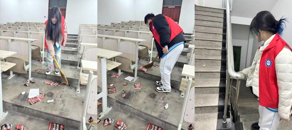 活动重点对校园周边、操场、食堂、教室及实训室等人流密集区域进行全面清扫。志愿者分组协作,手持清洁工具,细致清理路面落叶、绿化带杂物及卫生死角,并对公共设施进行擦拭维护。团结互助的正能量无处不在。参加此次活动的志愿者纷纷表示:“弯腰捡拾垃圾虽是小事,但能让龙职校园更美丽,这就是雷锋精神的生动体现”。