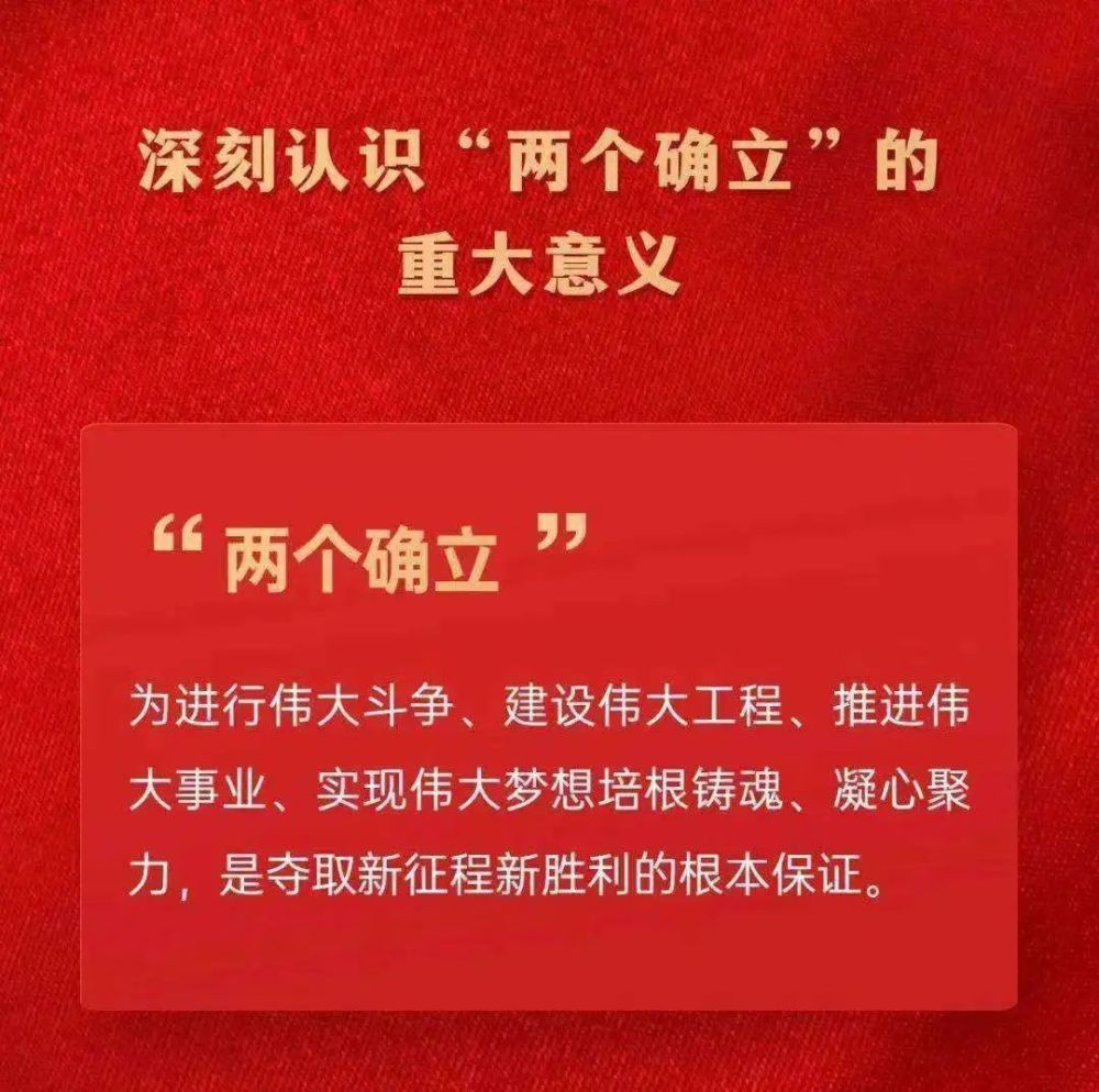党确立习近平同志党中央的核心、全党的核心地位,确立习近平新时代中国特色社会主义思想的指导地位,反映了全党全军全国各族人民共同心愿,对新时代党和国家事业发展、对推进中华民族伟大复兴历史进程具有决定性意义。