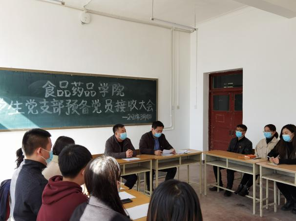 为响应党的号召,培养优秀党员,食品药品学院学生党支部于2021年3月18日在一号教学楼114隆重召开2021年上半年度第一批预备党员接收大会,出席此次会议的有食品药品学院党总支书记史兴山、食品药品学院学管副院长于满昌、学生党支部全体党员同志以及26名被发展对象。