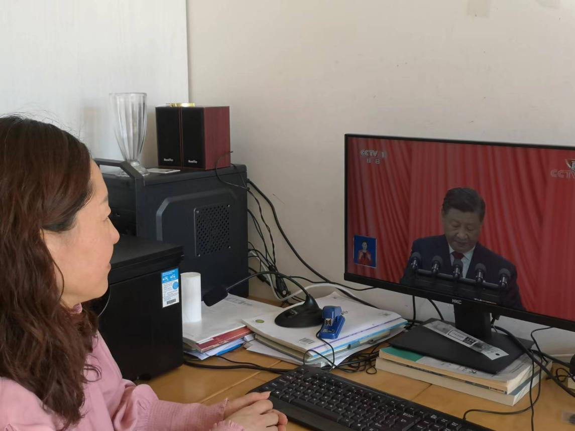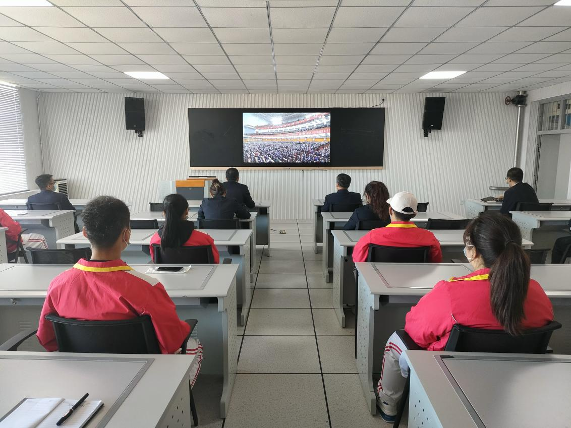 大会在雄壮的国歌声中正式开始,师生们认真聆听了习近平总书记在大会上的讲话,主题是高举中国特色社会主义伟大旗帜,全面贯彻新时代中国特色社会主义思想,弘扬伟大建党精神,自信自强、守正创新,踔厉奋发、勇毅前行,为全面建设社会主义现代化国家、全面推进中华民族伟大复兴而团结奋斗。