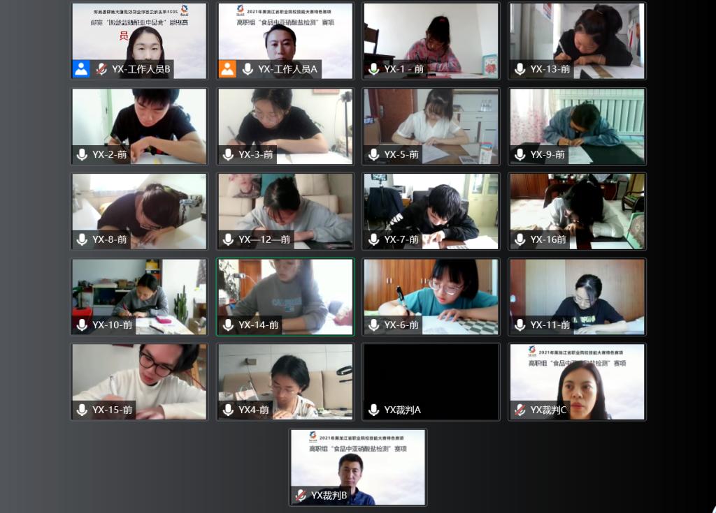 2022年5月28日,由黑龙江省教育厅主办,BB贝博艾弗森官方网站承办的2021年黑龙江省职业学校技能大赛特色赛项(高职组)(高职组)“食品中大肠菌群、亚硝酸盐检测”赛项首次以线上比赛的形式举办。共有来自省内8家高职院校,32名选手参加了本赛项。在接到赛项举办通知伊始,食品药品学院领导高度重视,组建了以陈晓华书记、赵岩院长为组长,韩双副院长为副组长的赛项领导小组,统筹协调竞赛项目比赛内容的制定,并组织各赛项负责人及工作人员针对竞赛形式和竞赛内容使用腾讯会议平台多次模拟演练,以确保赛项的正常、有序开展。最终经过激烈的角逐,我院选手孙庆贺、滕龙娇、刘亚楠、王悦分别在食品中大肠菌群检测和食品中亚硝酸盐检测竞赛项目中脱颖而出,以总成绩第一名的喜人成绩斩获一等奖,指导教师孙璐璐、宋德花也获得了优秀指导教师荣誉称号。