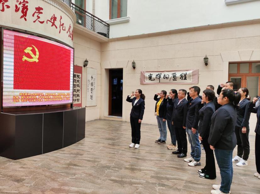 教师们认真聆听解说,一段段详实的文献史料、一件件珍贵的历史文物,生动地再现了中国共产党在哈尔滨民主革命时期和社会主义建设初期,带领哈尔滨人民团结奋斗、不断进取的历史画卷。参观结束后,全体党员干部在纪念馆宣誓厅,举起右手,面向党旗,满怀忠诚,庄严宣誓,再次重温入党誓词,铭记入党誓词。