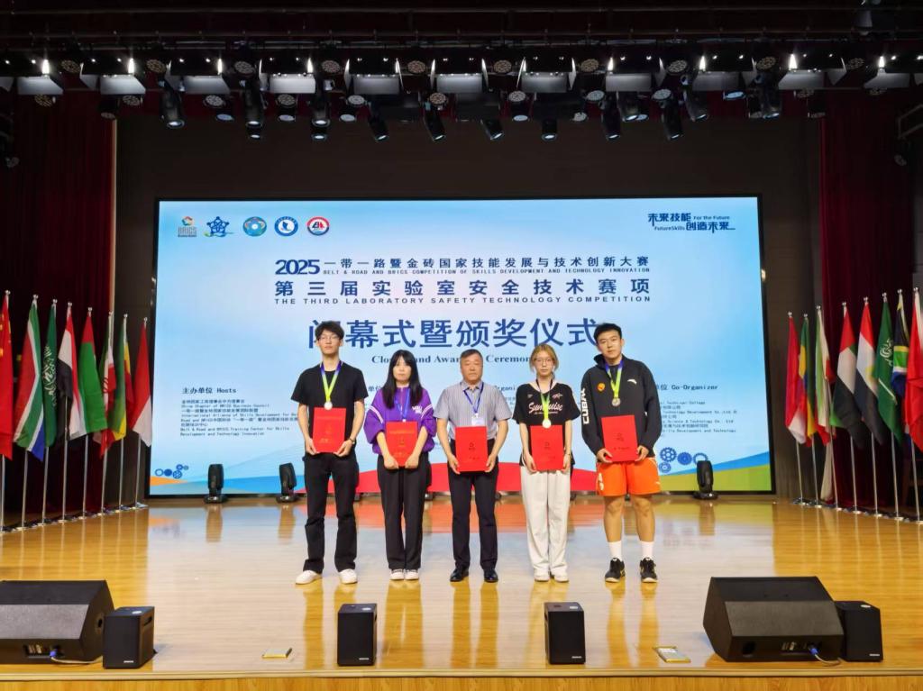 6月17到20日,2025“一带一路”暨金砖国家技能发展与技术创新大赛实验室安全技术赛项全国总决赛(高职组)在辽源职业技术学院圆满落幕。经过激烈角逐,由我院陈浩博、王博康、刘然三位同学(指导教师:朱丽杰、李曼)组成的代表队,从全国45所高职院校中脱颖而出,斩获团体二等奖。同时,贝博官网荣获“优秀组织奖”单位,指导教师获评“优秀指导教师”称号。