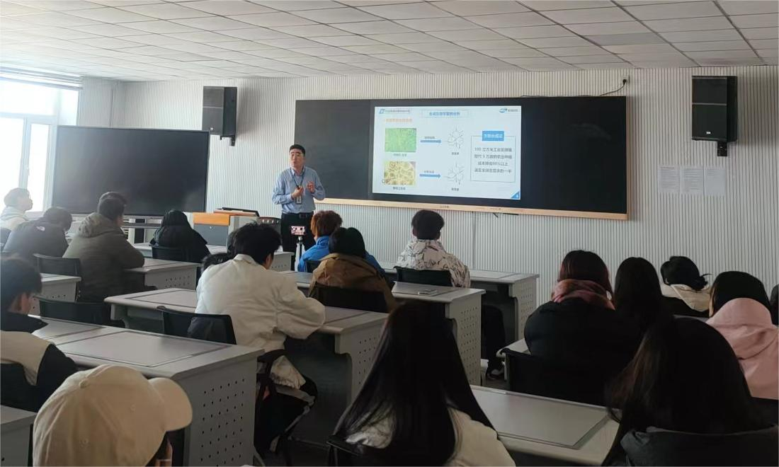 11月11日上午10时,我院产教融合专题系列活动周在2号实训楼510拉开序幕,来自黑龙江新和成生物科技有限公司的产业导师乔丹为23级学生代表开展了一场精彩纷呈的专题分享。