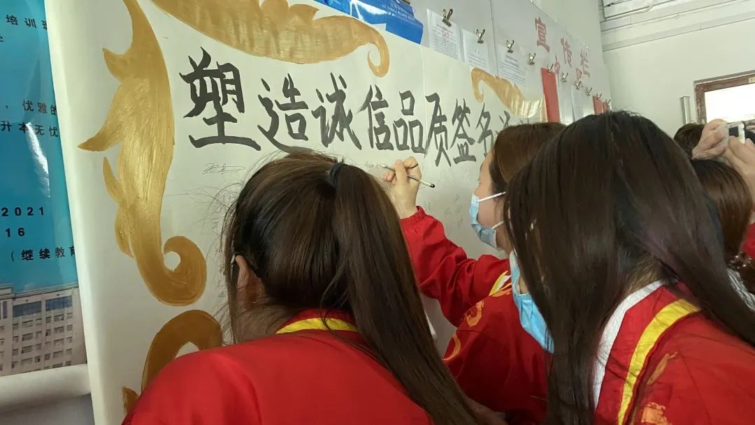 一笔一画,郑重认真,这不仅是一个简单的签名,更是一种承诺,也感觉到诚信的重要性,之后将签好字的画板展示在大厅,以便更多的同学受此感悟。
