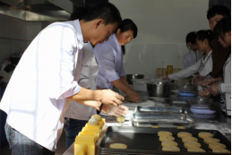 对于正在进行课堂实习的食品加工专业学生,技师们进行了悉心的技术指导,及时纠正了学生在加工生产实践中易犯的错误,从原料处理到成品包装,学生们得到了完整的技艺传授,纷纷表示收获颇丰。技师们也表示,学生生产出来的成品已经达到了质量合格标准。