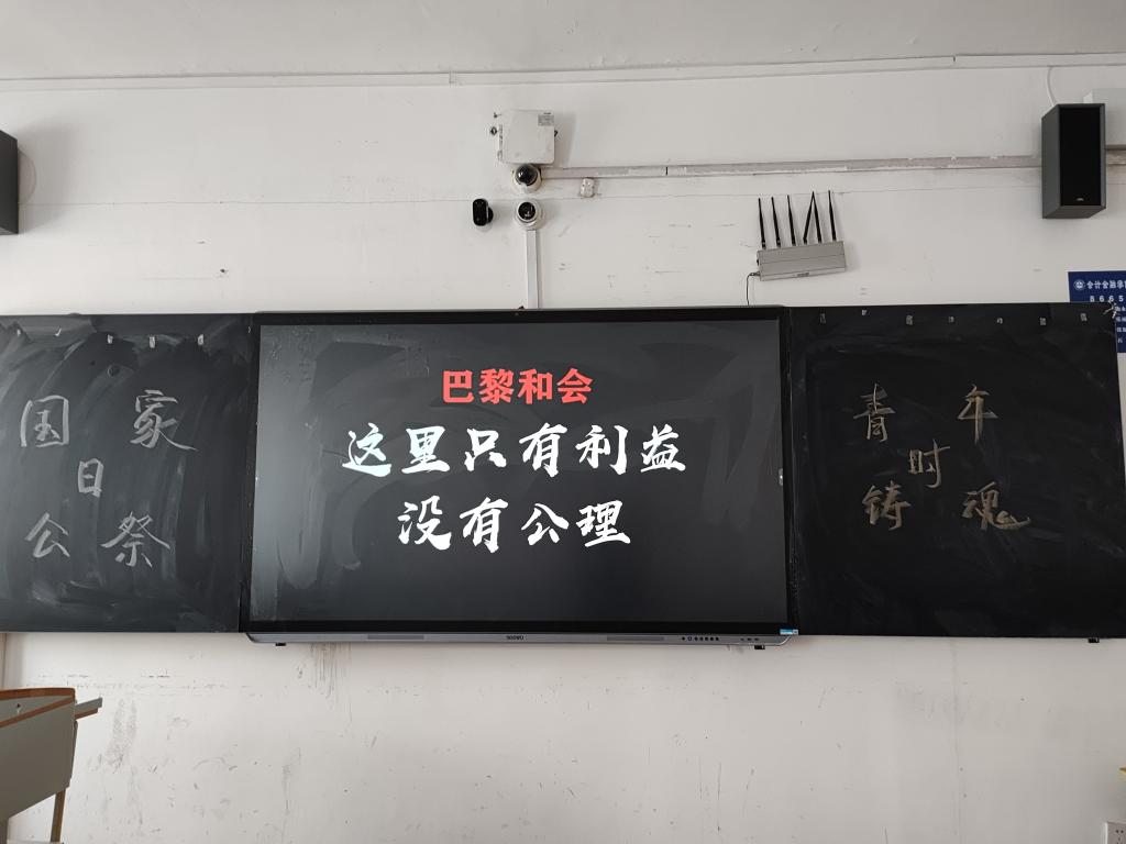 12月13日,国家公祭日,马克思主义学院教师组织学生以宣读自己沉浸式学习红色沙盘《巴黎和会》的心得体会的形式来表达青年人不忘国耻,争做新时代好青年的志向。