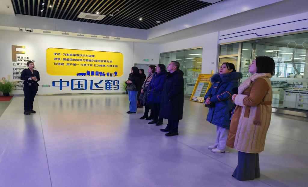 研修活动的第一站是飞鹤智能化工业观光产业园。在这里,共分为四个部分进行参观。一是未来展厅,首先映入眼帘的是文化墙、飞鹤发展大事记、飞鹤质检以及飞鹤荣誉等展示内容,让老师们深刻感受到飞鹤乳业的辉煌历程和卓越成就。二是情景展示中心,通过生动的场景还原,让大家仿佛置身于飞鹤乳业的发展历史中。三是产品中心和实践中心,研修者可以进行产品体验。四是透明工厂,展示了飞鹤乳业的核心产品和先进的生产工艺,如大数据可视化管理中心、母乳化配方、蒸发浓缩、喷雾干燥、中控室、内包装生产线等一系列先进设备和技术。老师们对飞鹤乳业的科技创新实力赞叹不已。此次在飞鹤乳业的参观,不仅是一次工业旅游模式的体验,更是一次开阔眼界、博闻强识,让老师们增强了对国货品牌民族之光的了解。