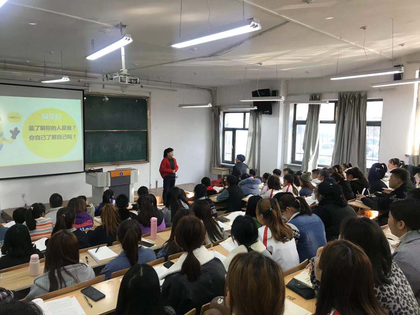 深秋的清晨已是寒凉时节,但学生们都早早来到了教室,等待上课铃声的响起。教态大方、和蔼亲切的心理教研室主任蔡培培老师采用问题导入的方式开启了教学,接着进行“你猜你拍”的热身活动,以最快的速度对学生进行了整合,调动了学生的积极性,让学生体会到对自我潜能的低估,激励学生重新评价自己。在发展活动中,对感性与理性的探索帮助学生了解自己的特点,引发学生对自我探索的兴趣并且收获很多。教学活动设计新颖活泼,符合学生的特点,除了能够紧密围绕课程重点难点之外,课堂活动能够一脉相承,让学生在活动中对照自己,更好地了解自己,从而提升自己。最后教师从不同的角度进行理论总结提升。