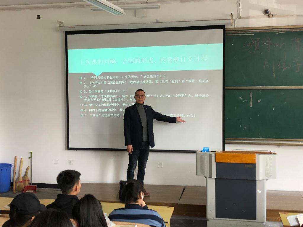 10月23日上午,思政教研部在清华楼东J201教室组织开展集体听评课活动,主讲教师为法律教研室主任葛欣老师,授课主题为合同法律制度,思政教研部全体教师参加。