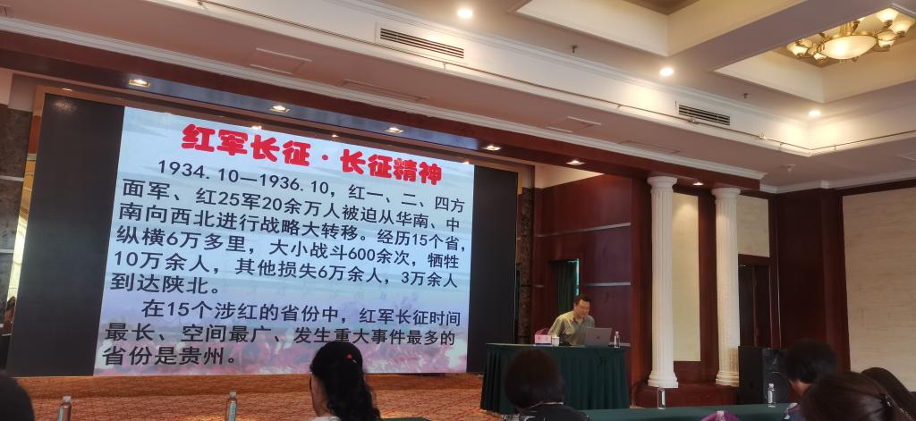 7月21日上午举行开班式。开班式上,贵州师范大学马院党委副书记彭法介绍了本次实践研修的背景和意义,强调了本次研修的学员管理规定;随后,参与研修的三所院校进行交流发言,贝博官网思政部主任陈桂香在会上作了精彩分享,向所有学员介绍了龙职的发展历程、龙职特色以及思政教研部的发展情况,并强调思政部所有参与研修的教师要珍惜机会,研中学、学中悟,并把所感所悟作为教学资源落实到思政课的教学中。最后,由贵州师范大学红军文化及红色旅游研究所所长李俊教授为研修班作了题为《红军长征和遵义转折》的专报告。