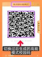 高能模式校园码切换方法:在“完美校园”生成的支付二维码上方单击“校园码(快捷模式)”处即可切换至高能模式校园码,生成的高能校园码对准消费机左上角扫码区即可完成支付。