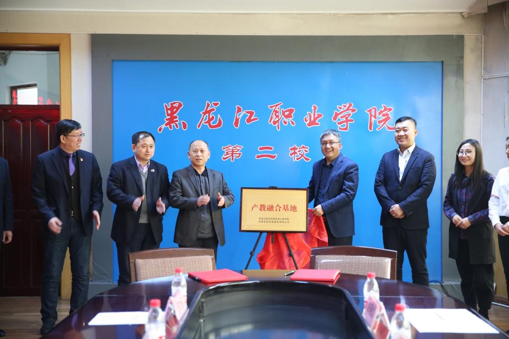 钟敏强首先代表学校对企业代表表示了热烈的欢迎,介绍贝博官网综合实力和发展前景,表示在将来的合作中坚持“面向未来、加强合作、优势互补、共同发展”的宗旨,建立并发展双方的友好合作关系。然后,景士俊就公司情况,合作内容进行了详细阐述并表达了深度合作的良好愿望。随后,钟敏强和景士俊分别代表校企双方签订《龙职•天阳宏业产教融合协议》,孙福忠和景士俊共同为产教融合基地揭牌。
