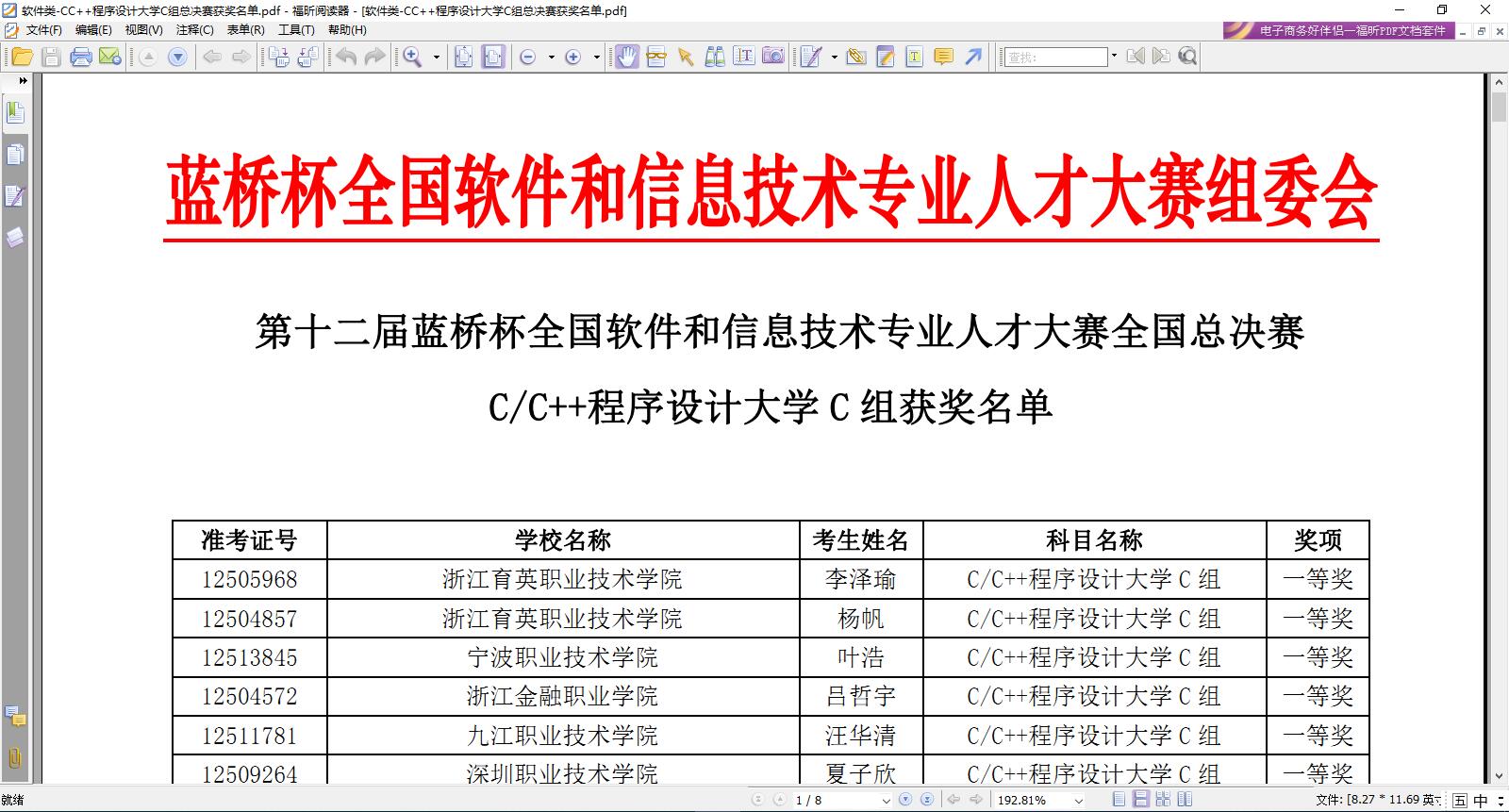 6月5日,由教育部就业指导中心支持,工业和信息化部人才交流中心主办的第十二届“蓝桥杯”全国软件和信息技术专业人才大赛(软件类)国赛顺利举办。本次比赛中,贝博官网软件技术专业学生曹瑞和徐延龙参加比赛,曹瑞获得了国赛二等奖的好成绩。