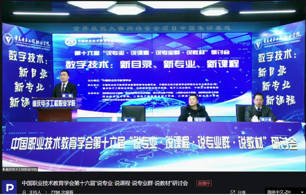 为加快落实《关于推动现代职业教育高质量发展意见》和2022年全国教育工作会议精神,加快电子信息大类专业升级和数字化改造,推进数字技术服务经济社会高质量发展,2022年3月25日,中国职业技术教育学会主办的“新目录、新专业、新课程‘说专业●说课程●说专业群●说教材’研讨会”胜利召开!