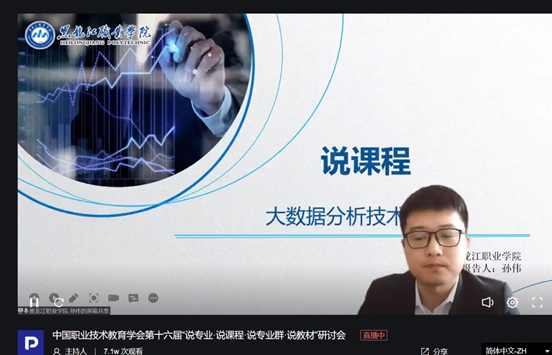 贝博官网信息工程学院党总支书记金忠伟教授和大数据技术专业教研室主任孙伟受到会议主办方的邀请,在本次研讨会上做专题讲座。其中,金忠伟教授做了说专业群-《新一代信息技术专业群》的专题讲座,孙伟老师做了说课程-《大数据分析技术应用》的专题讲座。