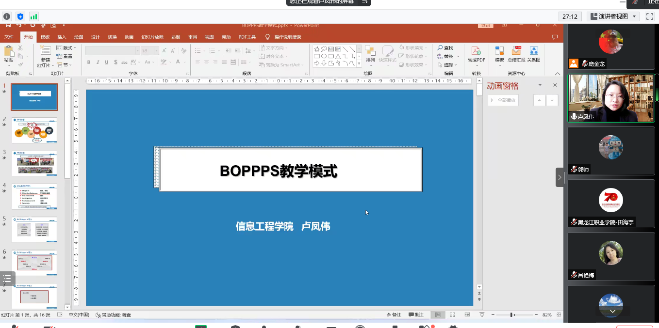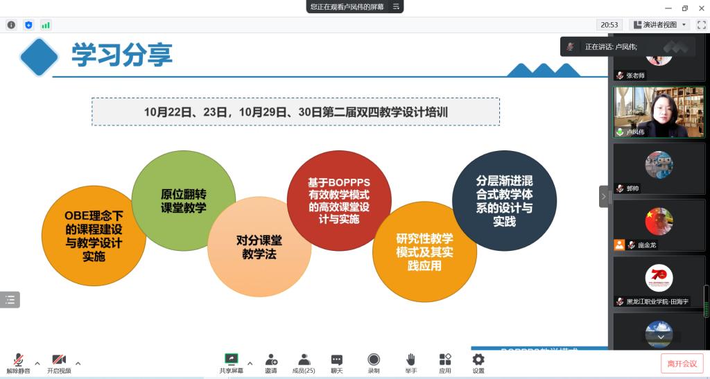 在本次会议中,卢凤伟与大家分享了多种新型教学法和教学模式,重点介绍了BOPPPS教学模式及BOPPPS教学模式在课堂教学设计中的运用。