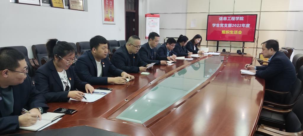 为深入学习贯彻党的二十大精神,提高党支部的组织力和凝聚力,信息工程学院学生党支部于3月27日9:00,召开了专题组织生活会及2022年度民主评议党员大会。本次会议由信息工程学院学生党支部书记赵玉桥主持,学院党总支书记金忠伟和学生党支部全体党员参加本次会议。
