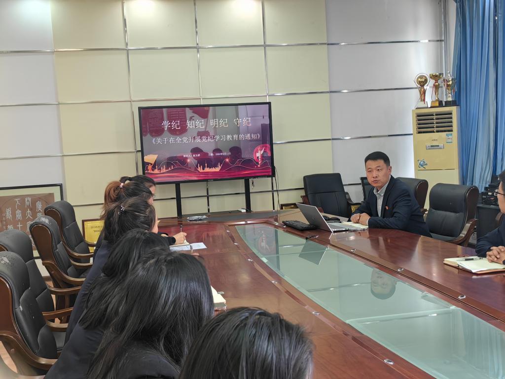 为进一步加强辅导员的党性修养,提升廉洁自律意识,进一步推动辅导员队伍作风建设的规范化、制度化。信息工程学院学生党支部于5月11日举行以“学纪、知纪、明纪、守纪”为主题的党纪学习教育。本次主题教育学习由信息工程学院党总支副书记赵玉桥讲授。