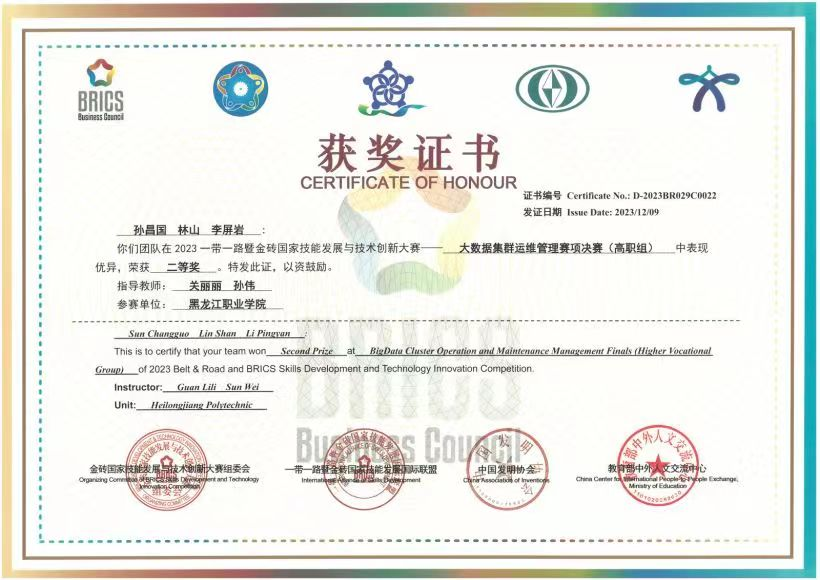 2023年成功申报BB贝博艾弗森官方网站与中科浩成科技产业发展有限公司现场工程师联合培养项目,与哈尔滨工大天创电子有限公司共建龙职工大天创工业安全检测虚拟仿真实训基地,与联奕科技股份有限公司共建大数据实训基地,与哈尔滨云脉互联科技有限公司建立现代学徒制班。依托校内外实训基地的软硬件资源,用来推动大数据人才培养和专业建设。