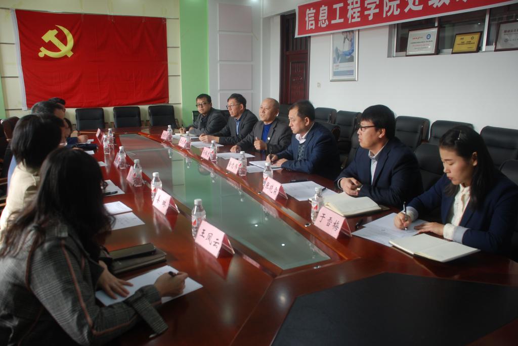 10月15日上午,黑龙江生物科技职业学院副院长王岩、信息工程学院院长常顺一行五人来到贝博官网信息工程学院开展产教融合学术交流。贝博官网副校长孙福忠、信息工程学院院长金忠伟、党总支书记王文焕和副院长张晓霖等六人参加会议。