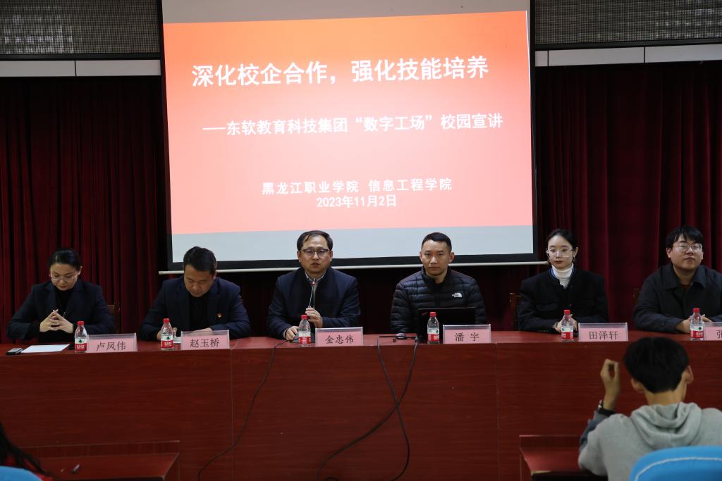 11月2日,东软教育科技集团到BB贝博艾弗森官方网站信息工程学院进行“深化校企合作,强化技能培养”为主题的“数字工场”校园宣讲活动。本次活动面向软件技术2022、2023级全体学生,活动由教学院长卢凤伟主持,学院党总支书记金忠伟、副书记赵玉桥及软件技术专业相关教职员工参加了本次活动。