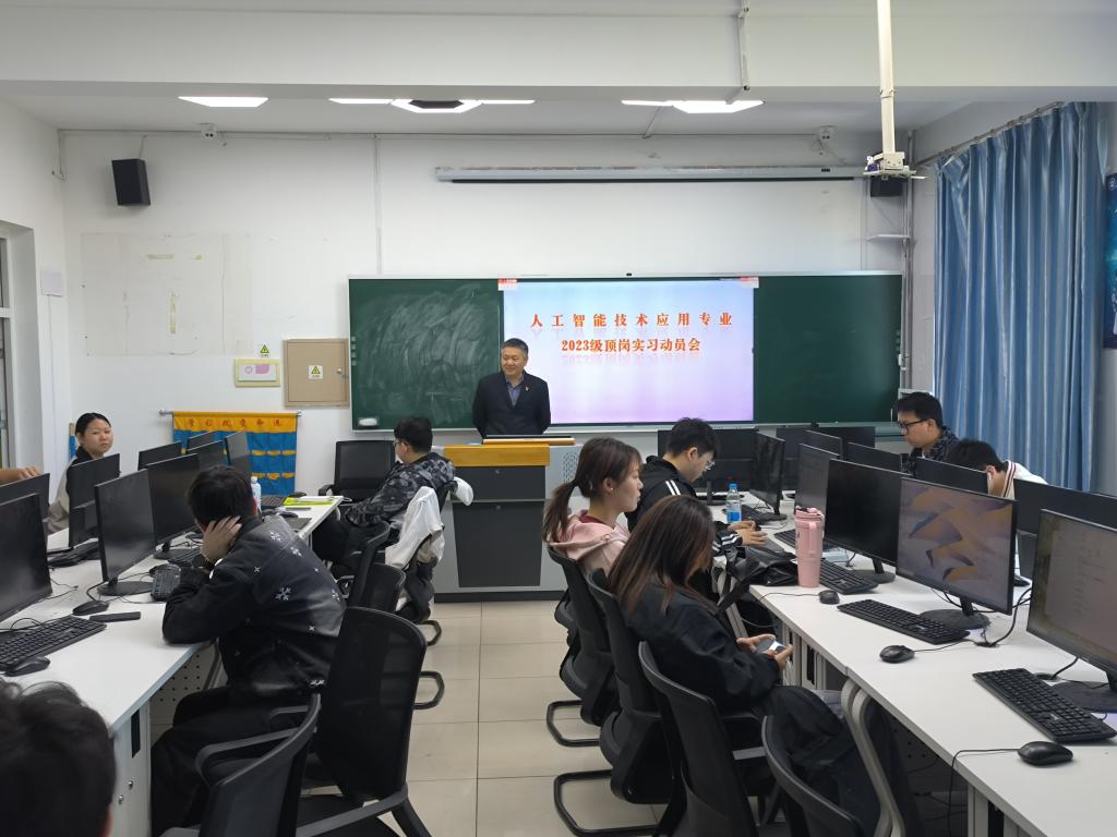 为有效落实专业人才培养方案实践教学安排,促进理论与实践结合,保障学生实习工作有序推进。2025年5月20日,2023级人工智能技术应用专业全体学生、专业负责人孙希强实习指导老师集聚在二教410,一起参加了2023级岗位实习动员会。
