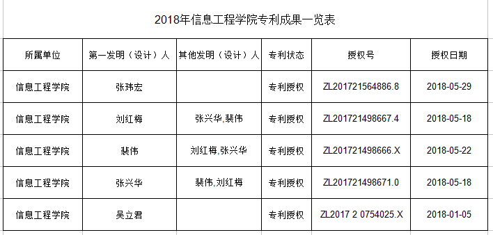2018年信息工程学院专利成果一览表
