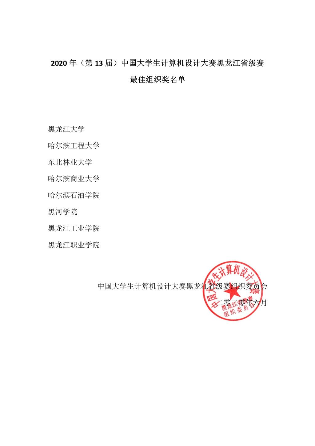 2020年6月9日,在哈尔滨商业大学举行的第十三届中国大学生计算机设计大赛黑龙江省赛高职高专组成绩揭晓,信息工程学院四支参赛队伍共获得省赛一等奖1项、二等奖1项和三等奖2项,贝博官网荣获高职院校唯一“最佳组织奖单位”,来自哈尔滨工程大学、黑龙江大学、东北林业大学等众多省内高校百余支队伍参加本次竞赛。