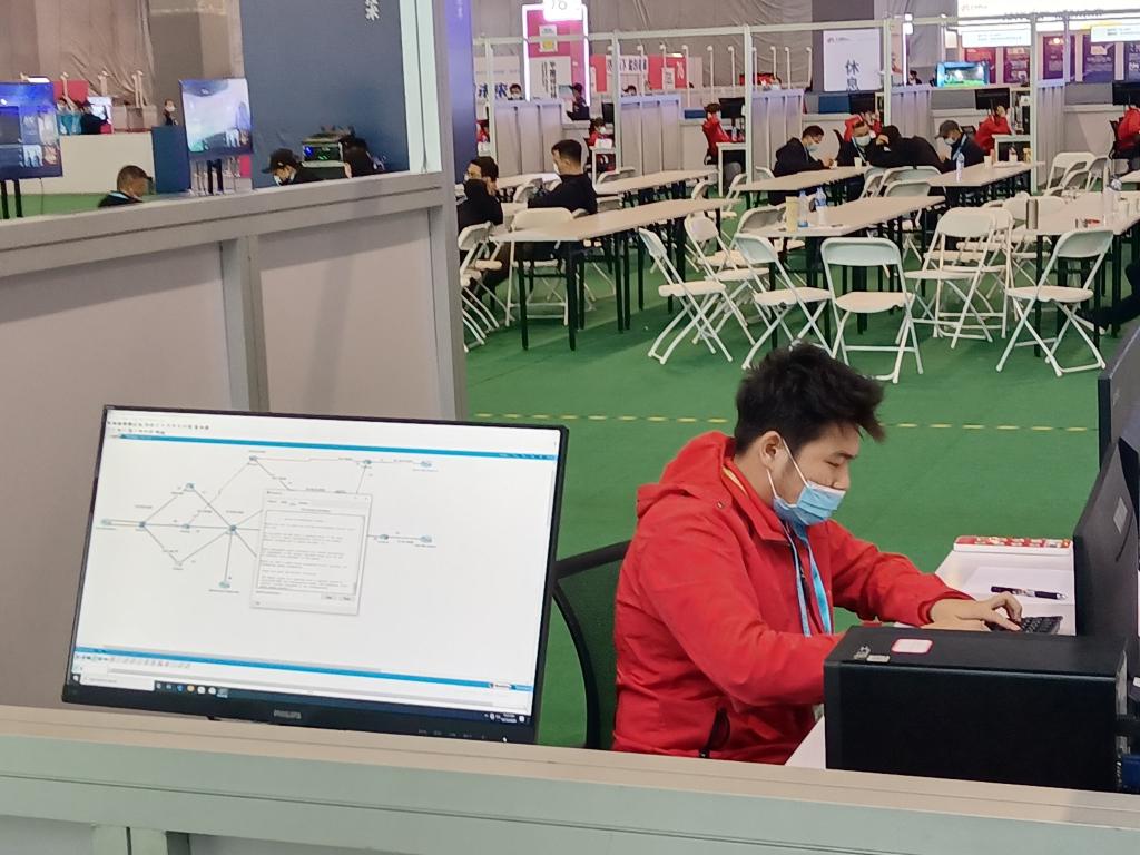 大赛采用A、B、C、D四个模块实操形式,现场操作,通过“linux应用”、“windows sever应用”、“网络设备配置”、“秘密挑战”四种题型考察参赛选手实际工程项目的综合分析能力、架构设计能力、网络配置能力、网络安全架构能力、创意创新能力。计算机网络技术专业学生李恩泽同学参加全国技能大赛赛,经过三天共12个小时的激烈角逐,李恩泽取得了优异的成绩,展现了贝博官网学生计算机网络技术技能与风采,收获了成果导向教学改革阶段性成果,赛后将认真总结,以赛促教,以赛促学,为培养更多高技能技术型人才而努力!