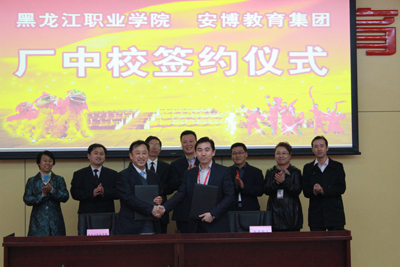 在安博(大连)实训基地,南院长一行考察了讲座楼、实训楼、开发楼等厂中校教学场所,观看了企业宣传片,听取了教学总监白进喜介绍了2009级合作专业的99名学生实训与就业情况总结,对校企“人才共育、过程共管理、利益共享、责任共担”机制予以高度评价。南院长说,安博教育集团是国内教育培训机构的龙头企业,先进的管理理念和务实的工作作风是保证校企深度合作前提,希望安博教育集团一如既往地高度重视与BB贝博艾弗森官方网站的合作,加强合作的深度,尝试建立BB贝博艾弗森官方网站信息工程学院(安博学院),做大做强品牌,坚持走高端路线、品牌路线。随后,在基地的报告厅举行了“BB贝博艾弗森官方网站安博教育集团厂中校合作签约仪式”,双方围绕厂中校建设情况进行了详细的洽谈,表达了对双方深度合作与健康发展的强烈意愿。