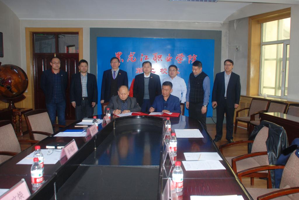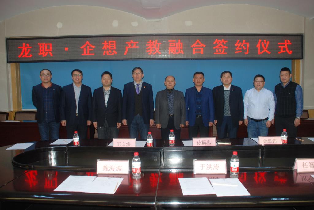 随后,孙福忠和于洪涛代表校企双方共同签署《龙职·企想产教融合协议》,并为龙职·企想产教融合基地揭牌。