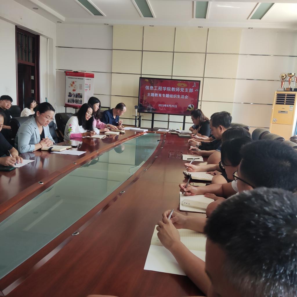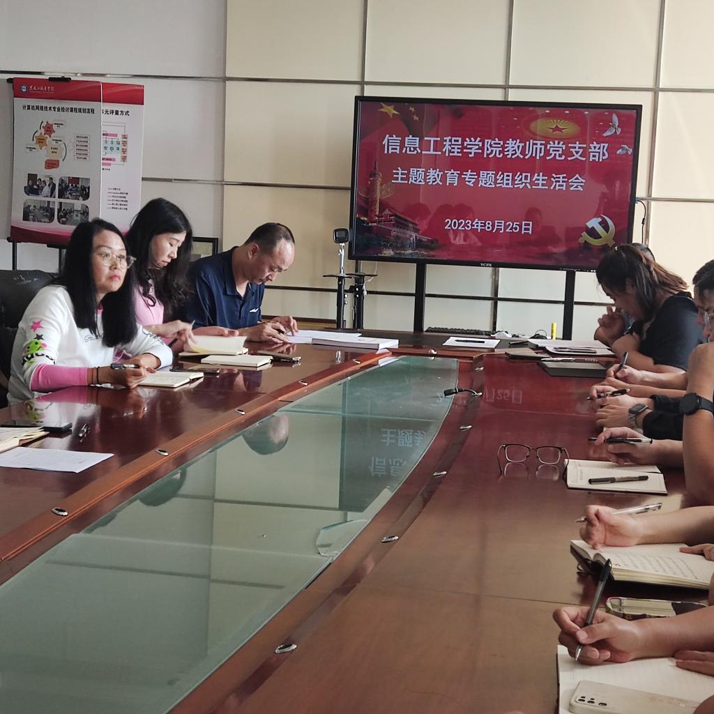 为深入学习贯彻习近平总书记关于主题教育重要讲话和重要指示批示精神,根据《中共中央纪委机关 中共中央组织部 中央学习贯彻习近平新时代中国特色社会主义思想主题教育领导小组关于在学习贯彻习近平新时代中国特色社会主义思想主题教育中开好专题民主生活会的通知》,8月25日9点30分,信息工程学院教师党支部在BB贝博艾弗森官方网站第二校区511会议室召开了主题教育专题组织生活会。本次会议由教师党支部书记卢凤伟主持,支部全体党员参加本次会议。