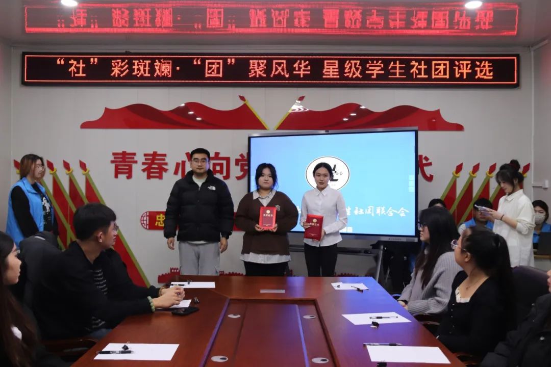 最终,由校团委学生副书记冯智慧,智能制造技术学院社联主席邓智超、能源与汽车工程学院社联主席胡哲、建筑工程学院社联副主席王元良、会计金融学院社联主席吕文欣、旅游人文学院社联主席董书畅构成的评委团,依据严格的评审标准,从各社团的活动的影响力、成员的参与度、社团的组织管理以及未来发展潜力等方面,综合考量各社团的表现,共评选出三个“五星级社团”、四个“四星级社团”、五个“三星级社团”。