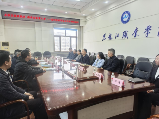 2025年3月27日,黑龙江商业职业学院学工部部长宋艳春、大庆职业学院学工部部长赵庆明一行4人来访。学校学工部部长赵彦生、学工部党总支书记石倩、学工部副部长曲艳丽、吴弢出席座谈会,学工部学生科、学籍科负责人、辅导员代表参加座谈。