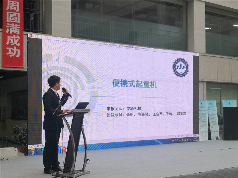 全国共有21个省、市、自治区的81所高校报名参赛,共申报1168个作品。经过专家盲评初审,共有341个作品入围决赛。在决赛中,贝博官网“龙职机械”团队由孙鹏、王宝军、于琦、鲁统强、邓美霞组成,他们在决赛中展示“龙职”学子过硬的专业技能和丰富的创新精神,其“便携式起重机”项目获得创业组三等奖的好成绩。